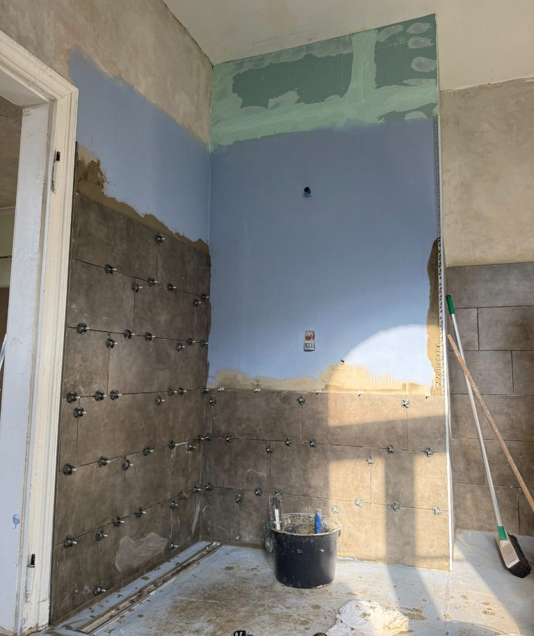 Die wärmeren Temperaturen lassen es zu, dass wir endlich anfangen können das Badezimmer zu fliesen